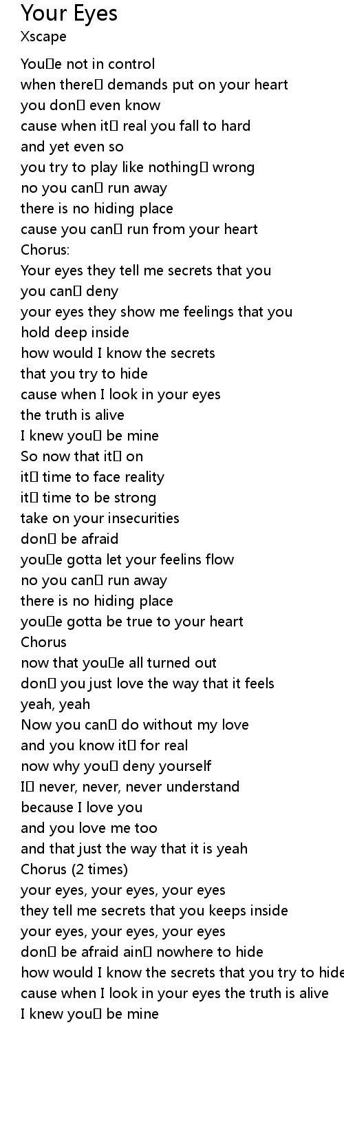 | Your eyes they tell me secrets that you | |