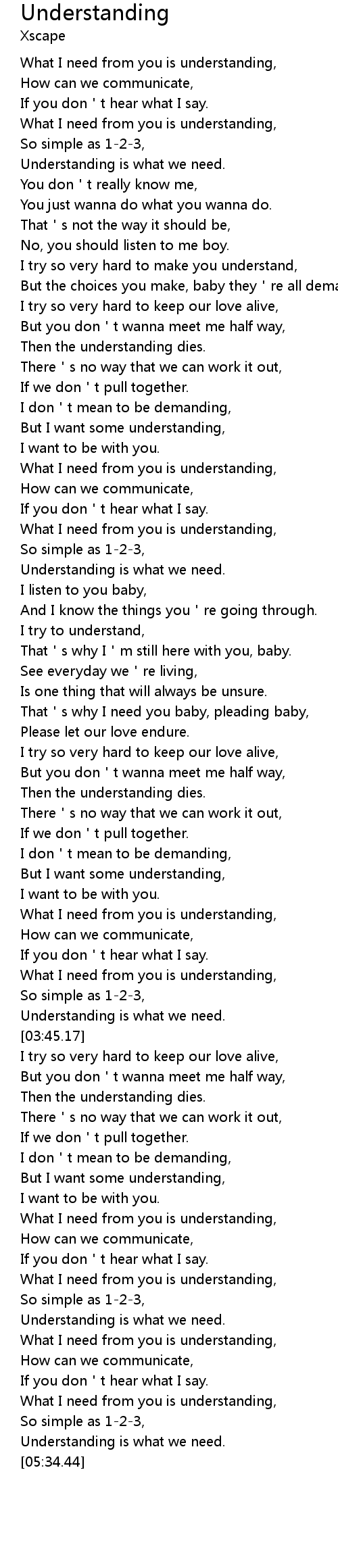 | [05:20.52] | What I need from you is understanding, |