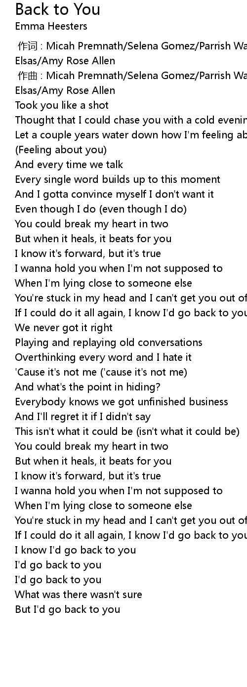 | [00:57.01] | If I could do it all again, I know I' d go back to you |