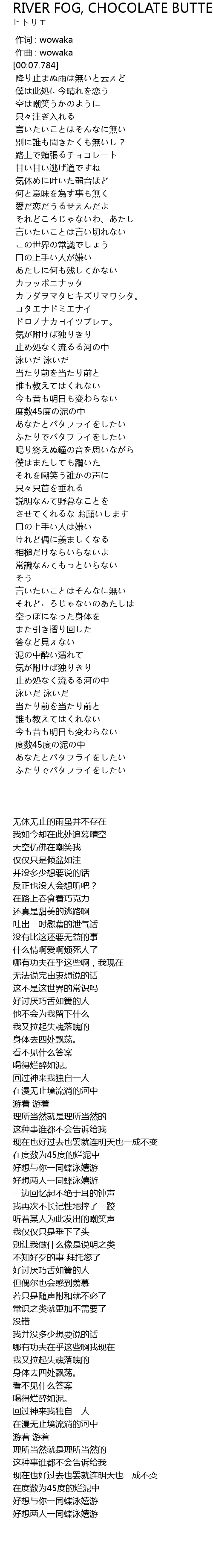 | [00:14.586] | 僕は此処に今晴れを恋う |