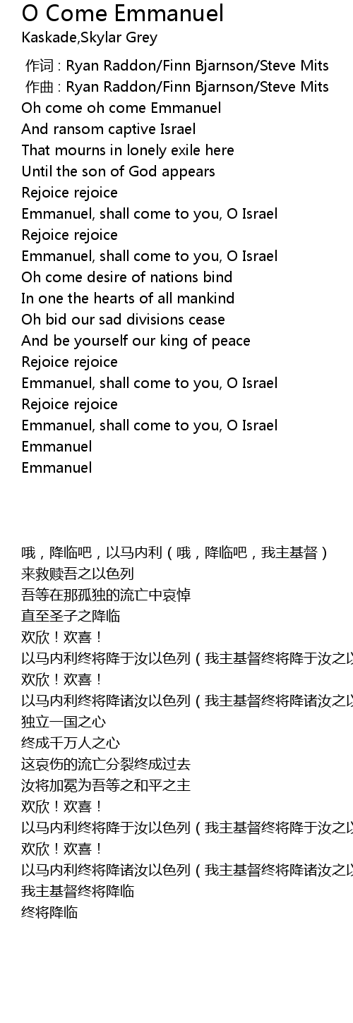 | [02:21.35] | Emmanuel, shall come to you, O Israel |