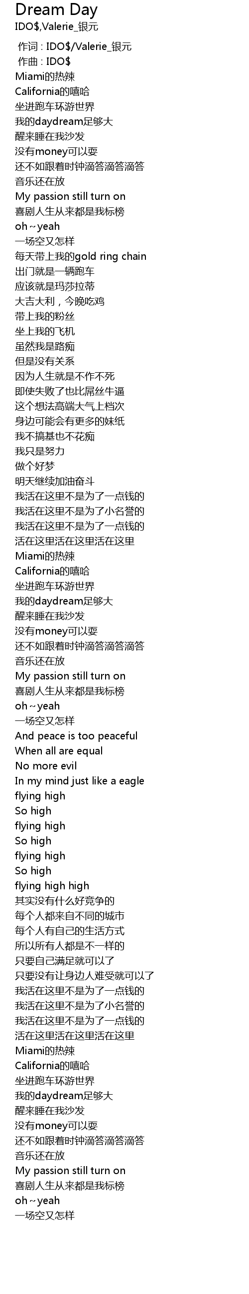 | [00:18.690] | 我的daydream足够大 |