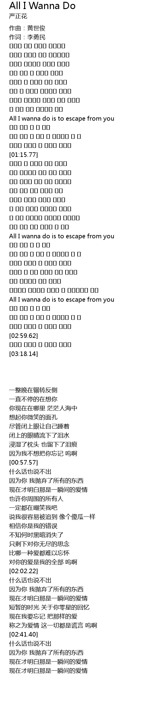 | [00:57.57] | All I wanna do is to escape from you |