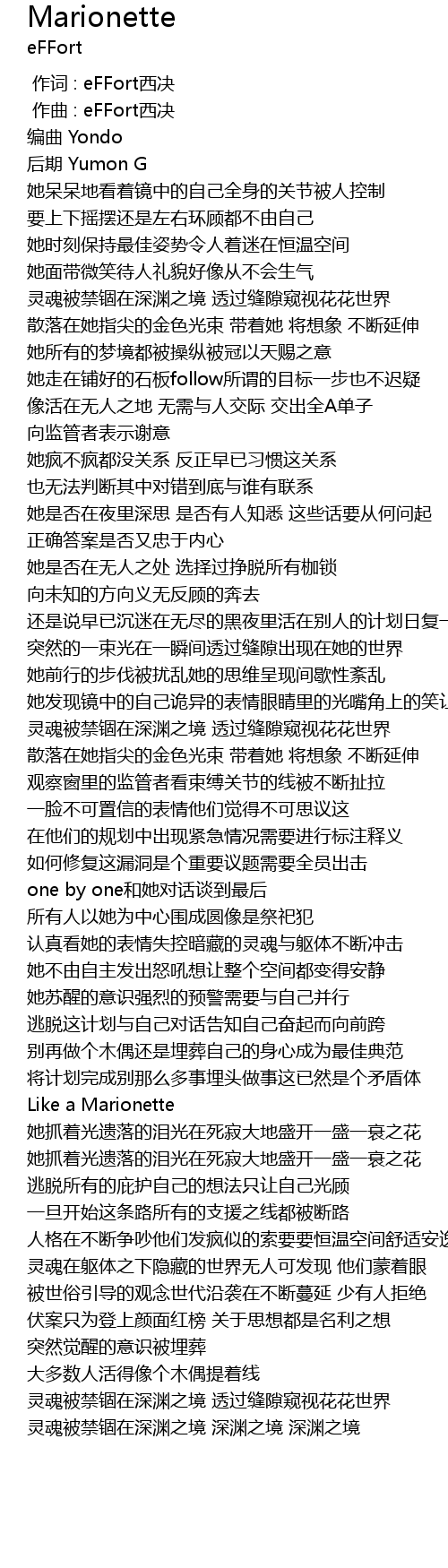| [02:29.414] | 别再做个木偶还是埋葬自己的身心成为最佳典范 |