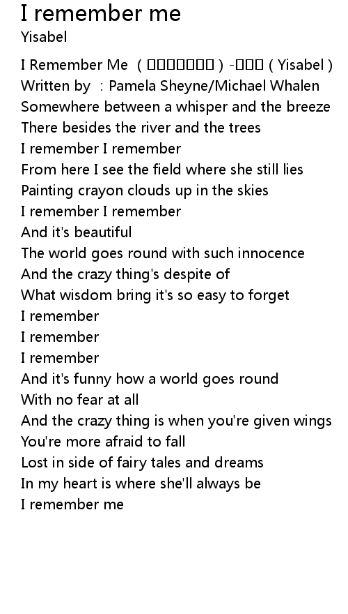 | [00:00.935] | I Remember Me (나는나를기억해)-이사벨(Yisabel) |