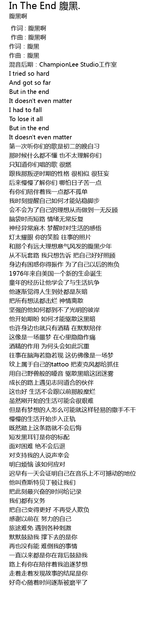 | Song | In The End 腹黑. |