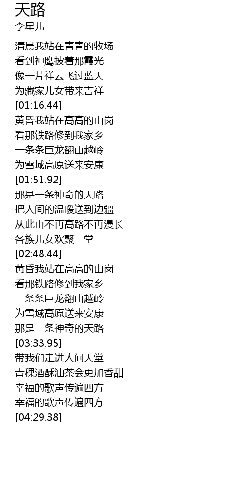 | [01:53.80] | nà shi yī tiáo shén qí de tiān lù |