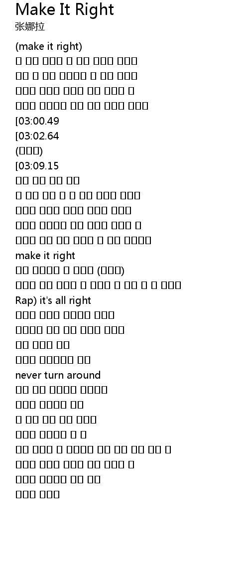 | [03:16.00][03:00.49][02:40.79][00:55.94] | make it right |