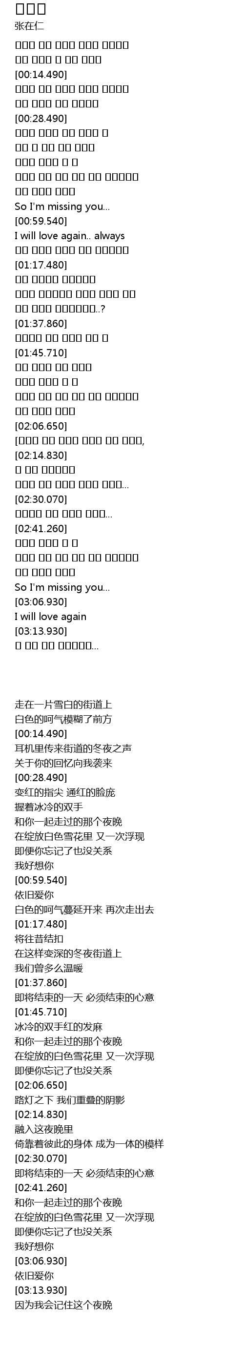 | [02:54.140] | 하얗게 피운 눈꽃 속에 다시 선명해져요 |
