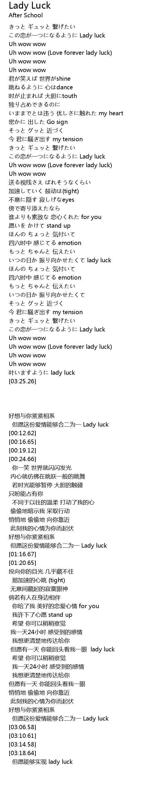 | [00:16.65] | Uh wow wow (Love forever lady luck) |