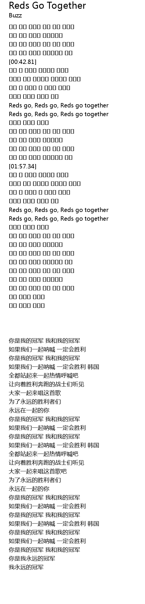 | [02:40.92] | Reds go, Reds go, Reds go together |