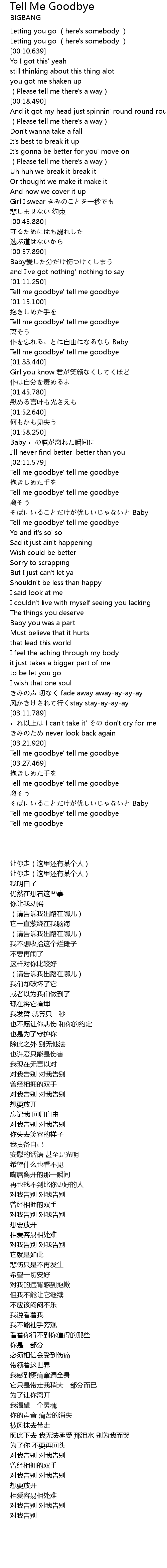 | [03:24.670] | Tell me goodbye' tell me goodbye |