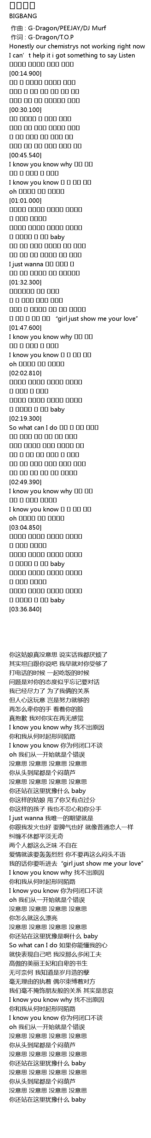 | [00:01.00] | 作词 : G-Dragon/T.O.P |