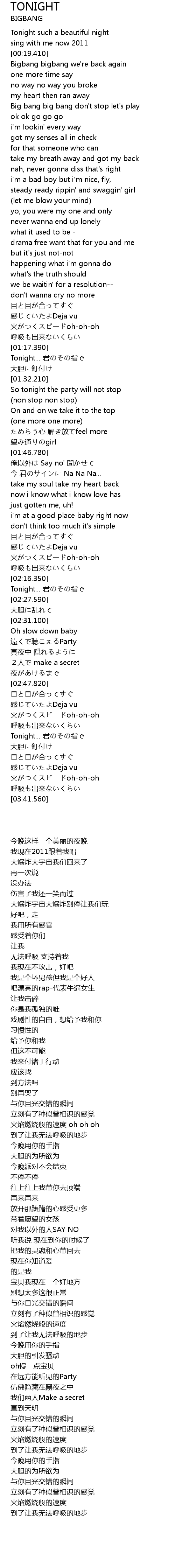 | [00:20.190] | Bigbang bigbang we' re back again |
