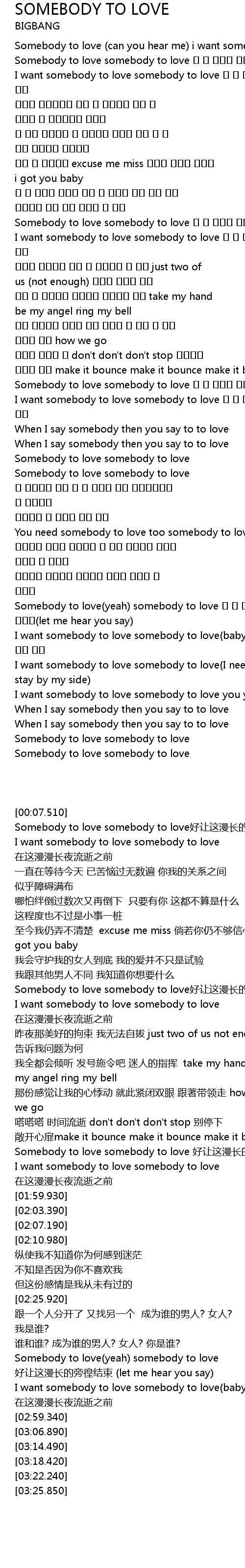 | [02:59.340] | I want somebody to love somebody to love(I need you right now so baby stay by my side) |