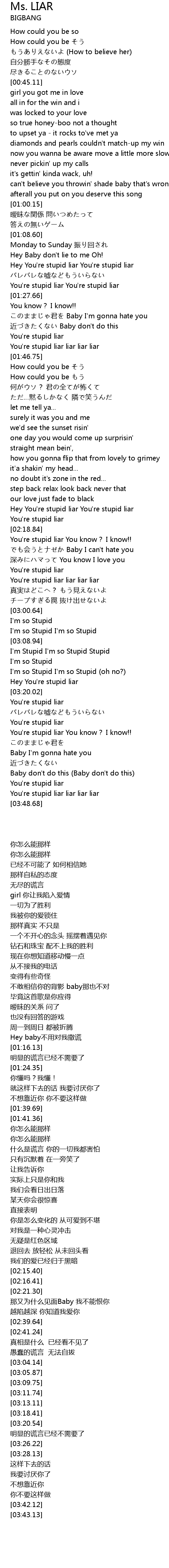| [01:24.35] | You're stupid liar You're stupid liar |