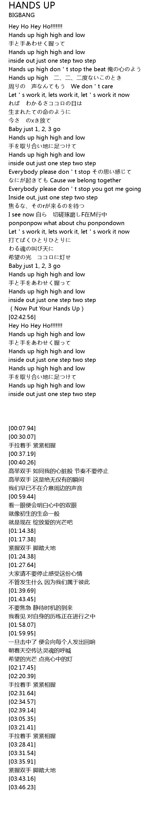 | [00:44.19] | Hands up high don t stop the beat ǎn xīn |