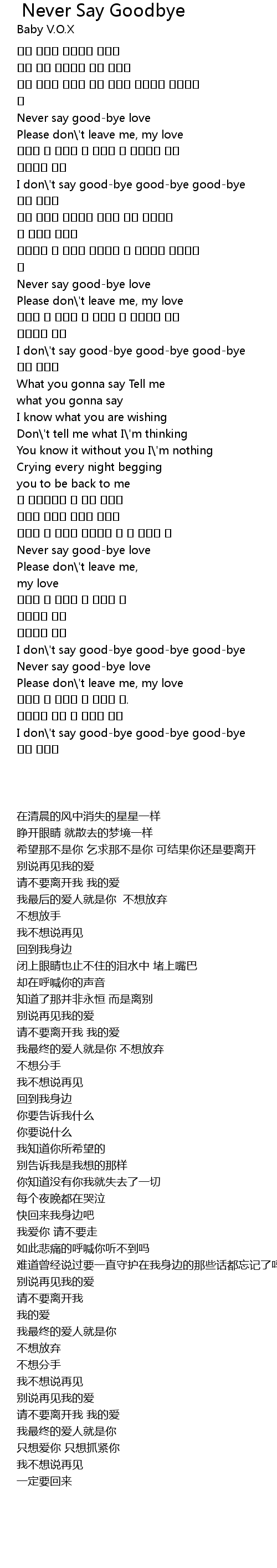 | [01:04.509] | I don' t say goodbye goodbye goodbye |