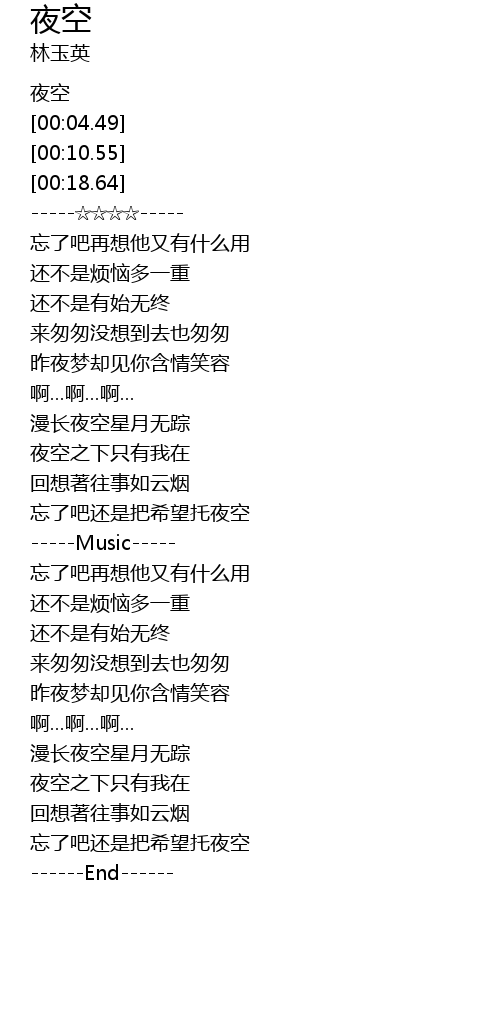 | [00:26.56] | -----☆☆☆☆----- |