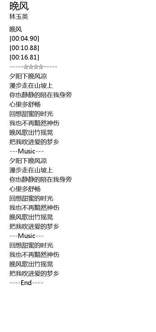 | [00:22.24] | xī yáng xià wǎn fēng liáng |