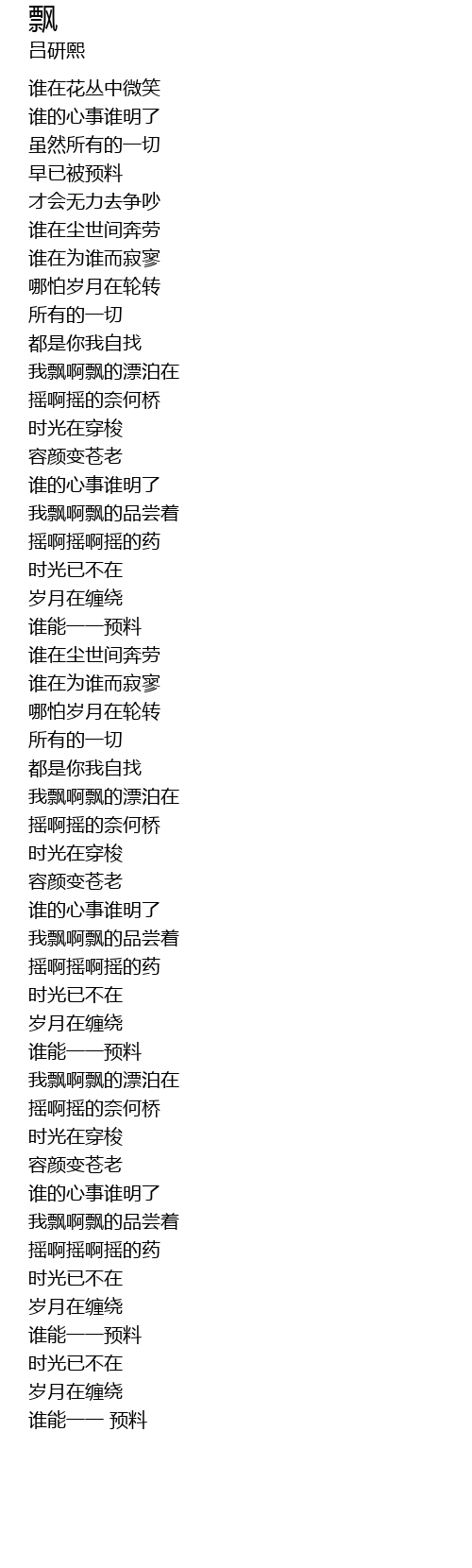 | [00:55.85] | 我飘啊飘的漂泊在 |