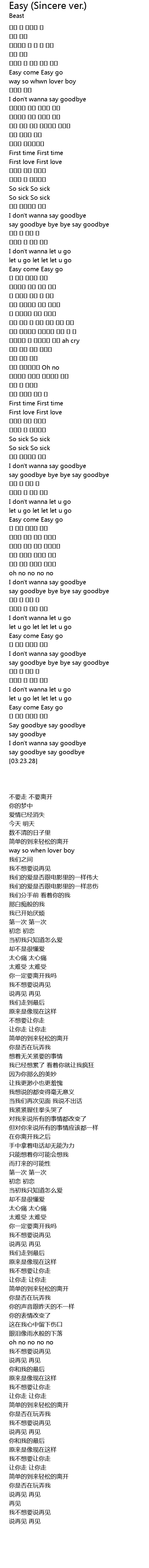| Song | Easy (Sincere ver.) |