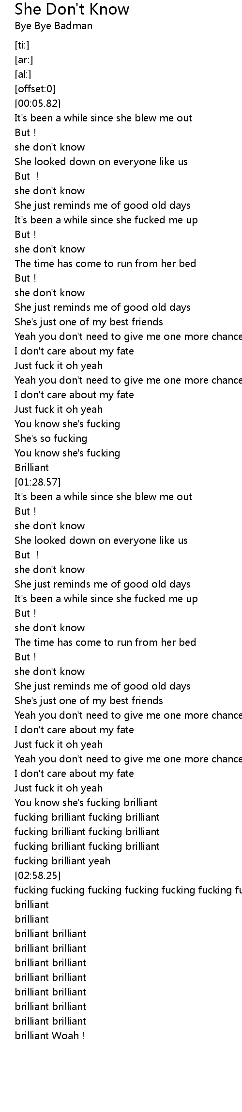| [01:11.69] | You know she's fucking |
