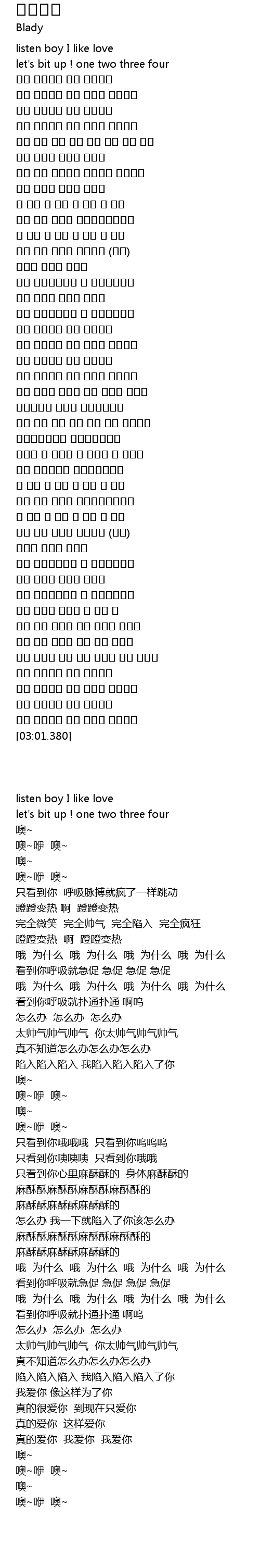 | [00:01.360] | listen boy I like love |