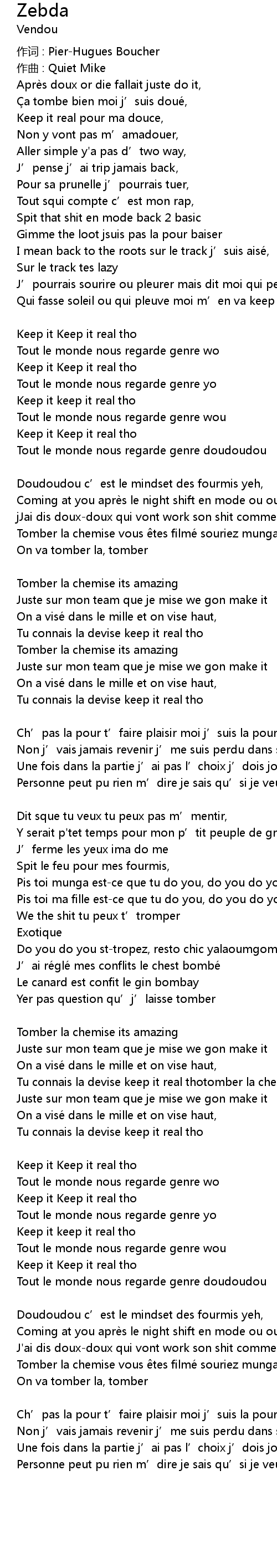 | Tu connais la devise keep it real tho | |