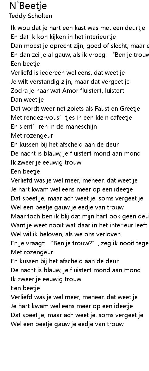 | [00:24.196] | En dan zei je al gauw, als ik vroeg: “Ben je trouw?” |