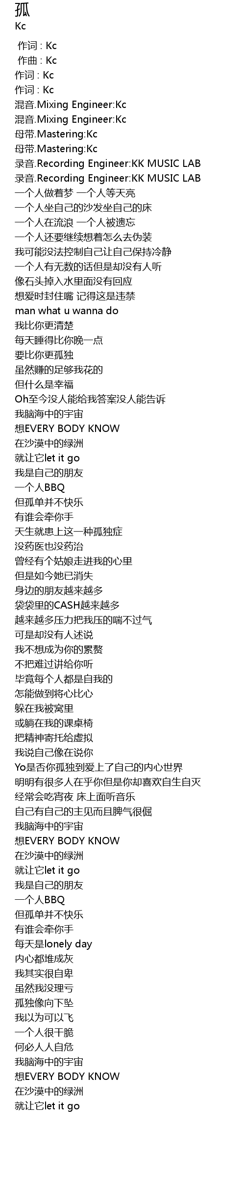 | [00:05.87] | hun yin. Mixing Engineer: Kc |