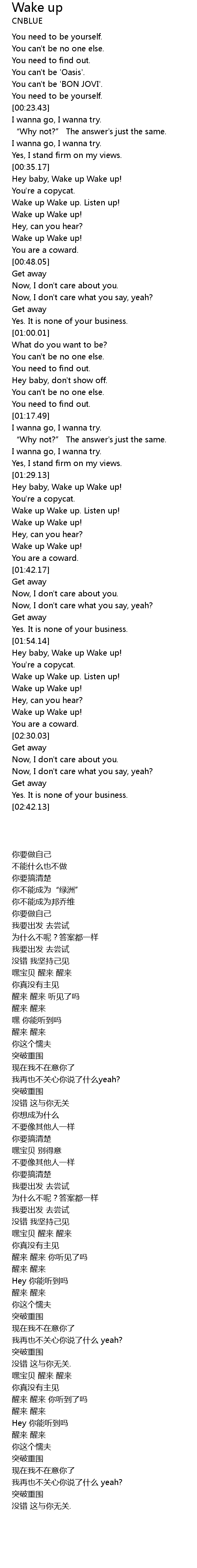 | [02:21.14] | Wake up Wake up. Listen up! |