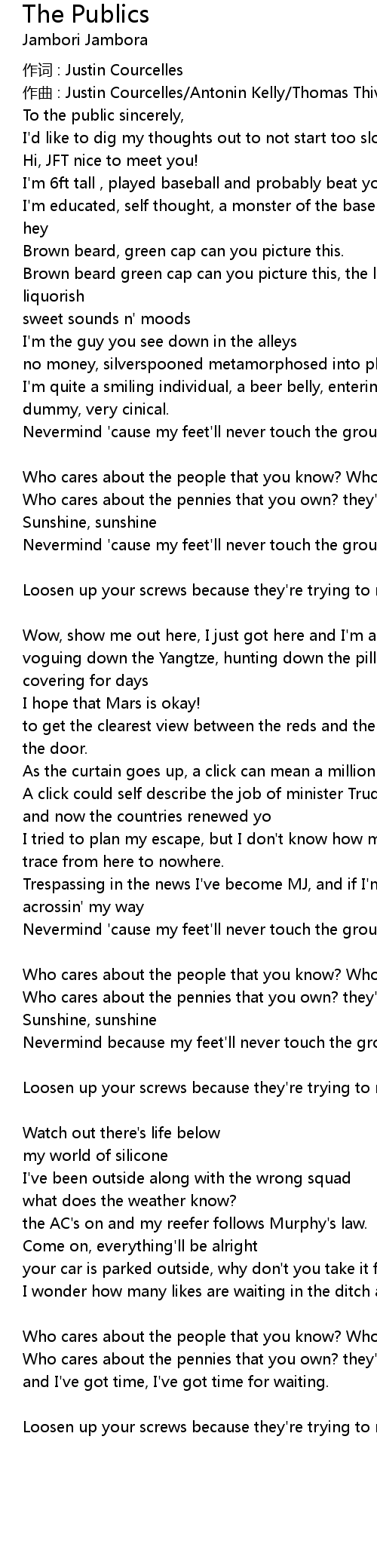 | Who cares about the people that you know? Who' ll pick you off the floor? | |