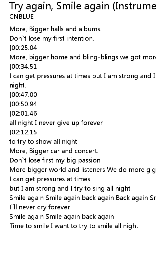 | [02:55.59] | Time to smile I want to try to smile all night |