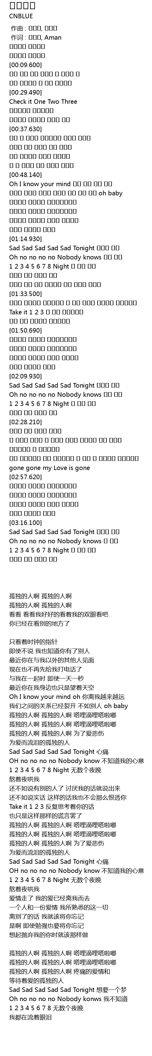 | [01:15.240] | Sad Sad Sad Sad Sad Tonight 가슴이 아파 |