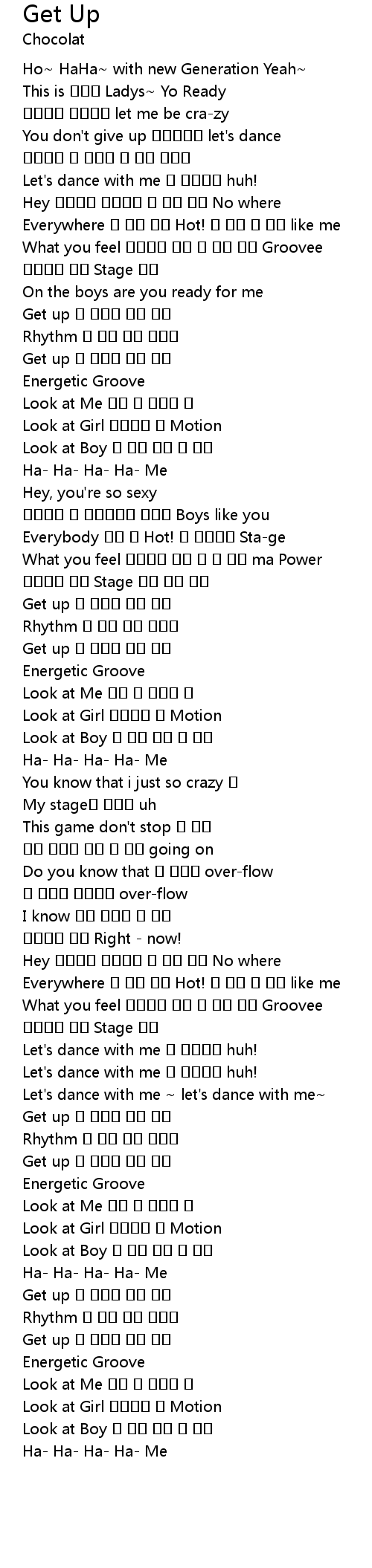| [00:38.910] | Get up 내 음악에 몸을 맡겨 |