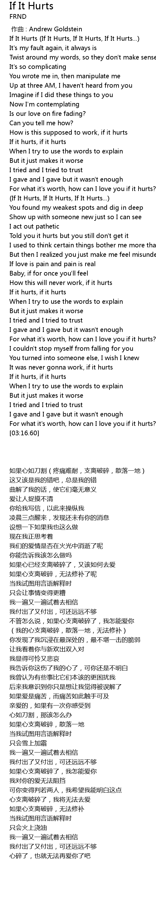| [00:00.30] | If It Hurts (If It Hurts, If It Hurts, If It Hurts...) |