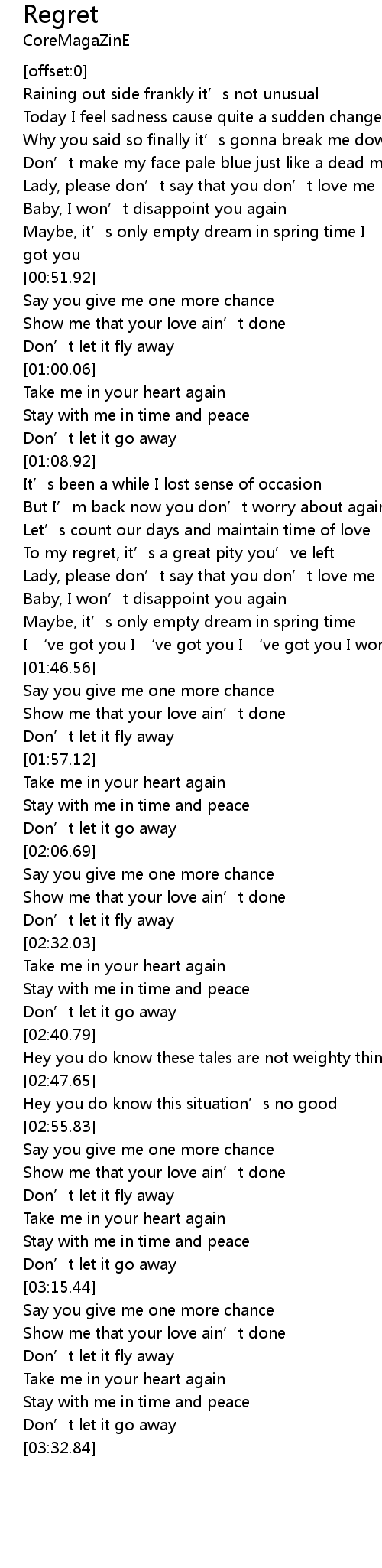| [00:52.76] | Say you give me one more chance |