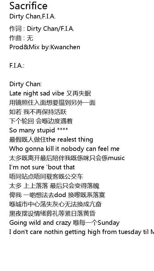 | 作词 : Dirty Chan/F.I.A. | |
