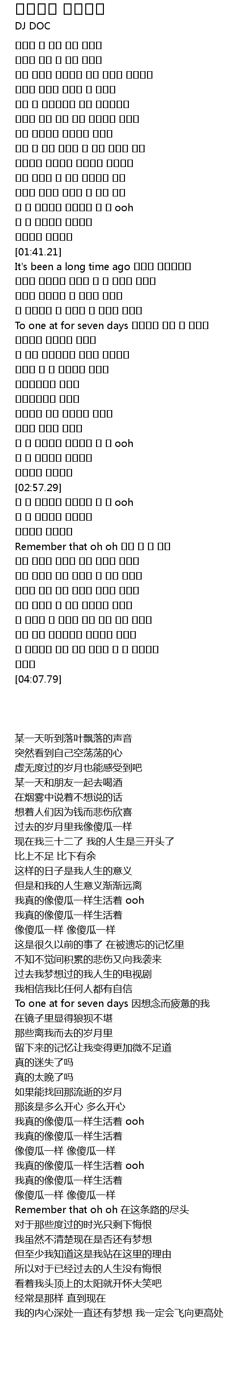 내가 살아온 날들에 대해 후회만 남았네 |