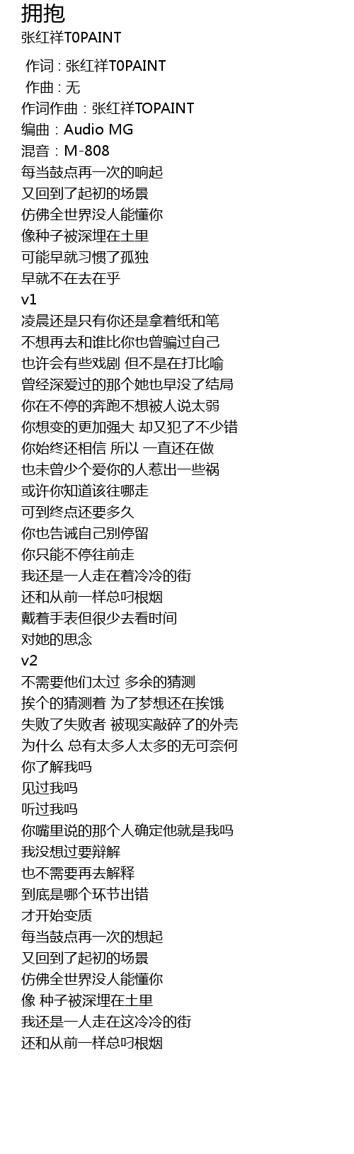 | [00:19.540] | 作词作曲:张红祥TOPAINT |