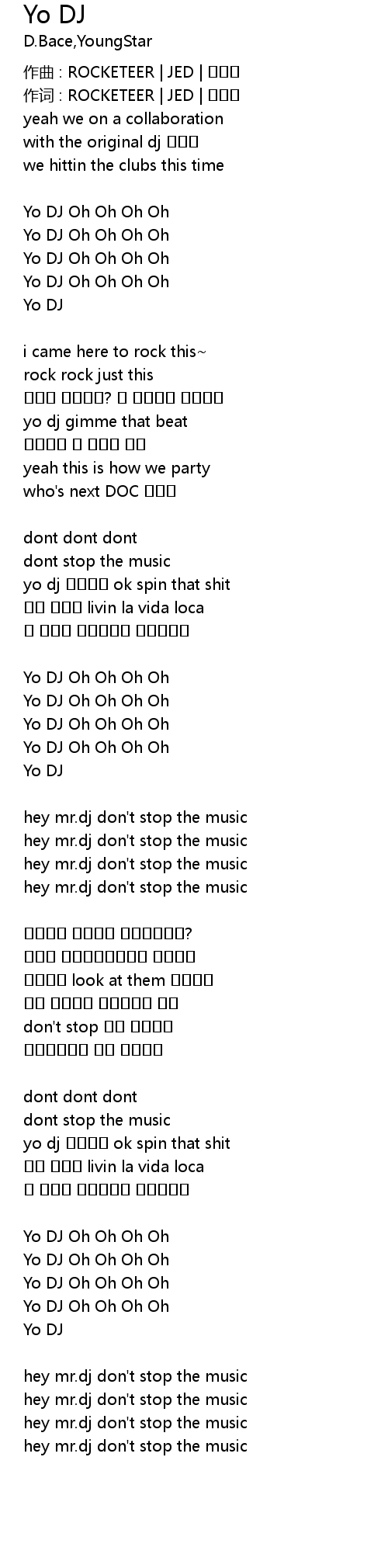 | yo dj 멈추지마 ok spin that shit | |