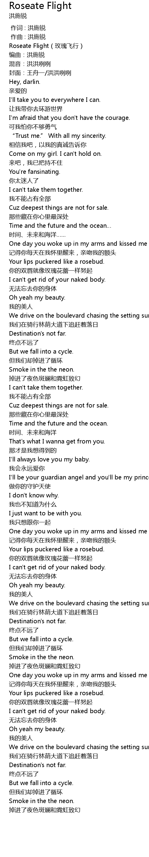| [00:13.930] | Roseate Flight mei gui fei xing |