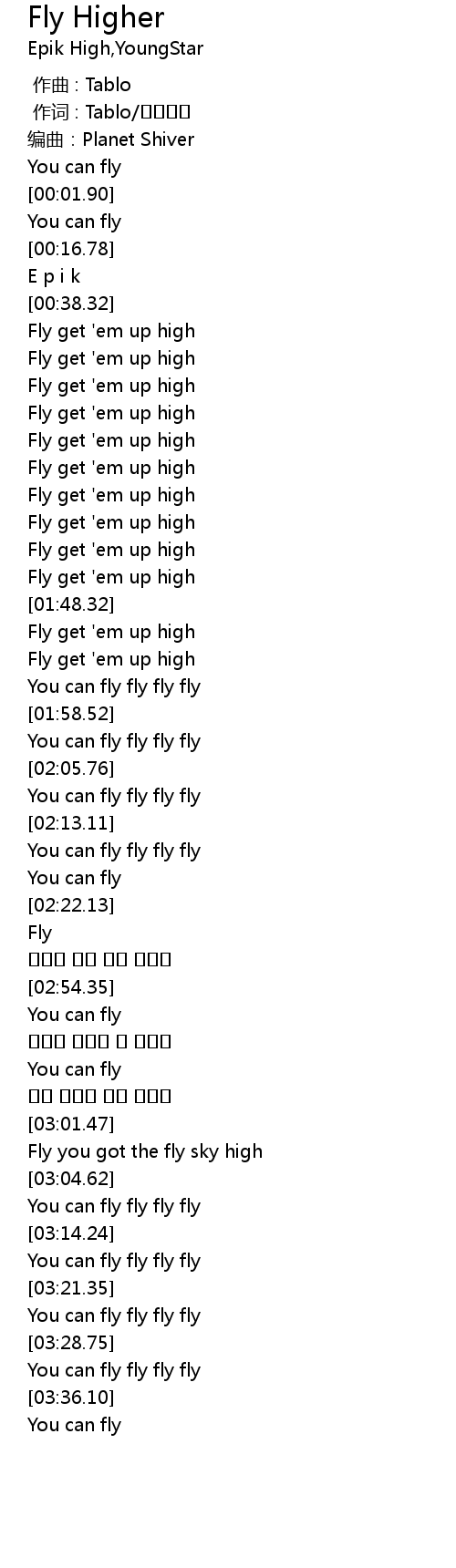 | [01:41.23] | Fly get 'em up high |