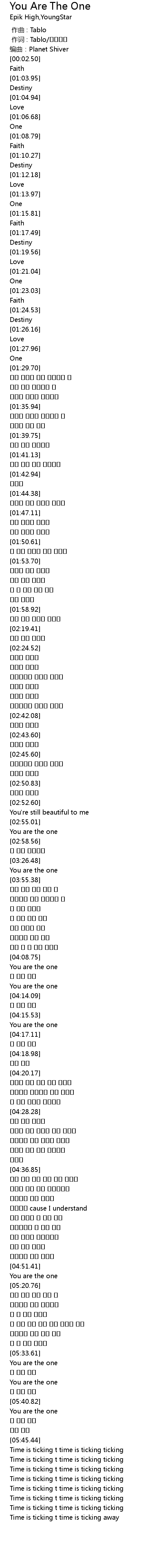 | [00:00.341] | 作词 : Tablo/미쓰라진 |