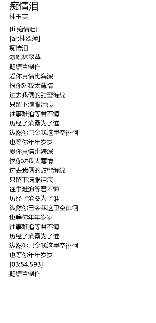 | [02:04.10] | zhi liu xia man yan lei hen |