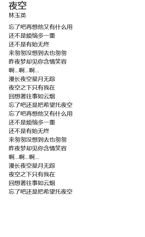 | [01:25.690] | wàng le ba hái shì bǎ xī wàng tuō yè kōng |