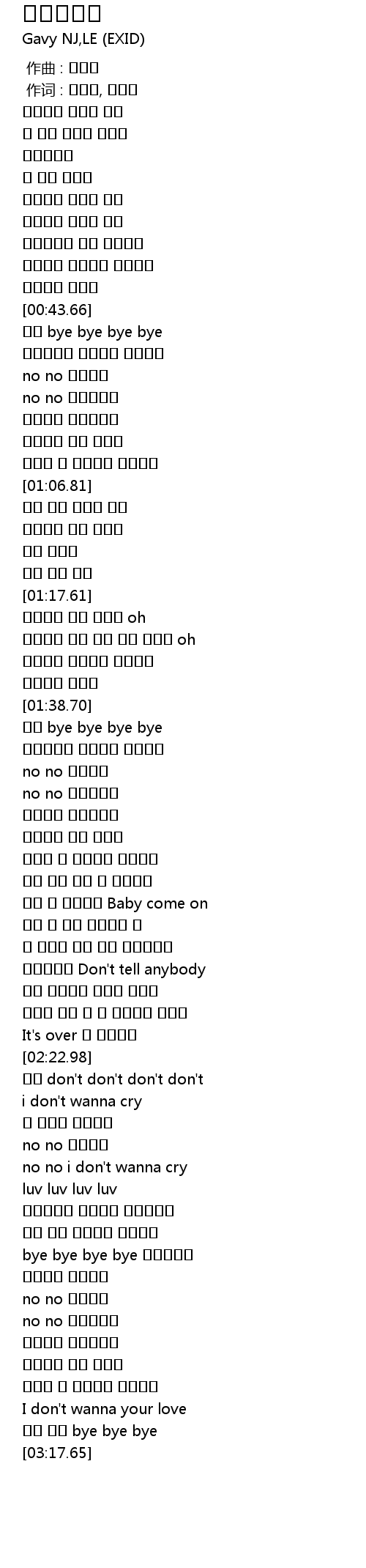 | [02:47.55] | bye bye bye bye 연락하지마 |