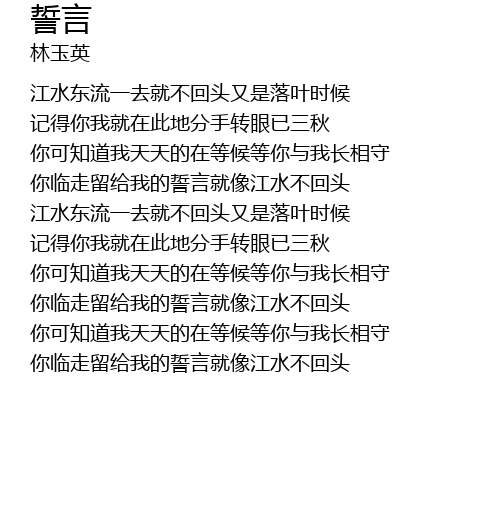 | 你临走留给我的誓言就像江水不回头 |