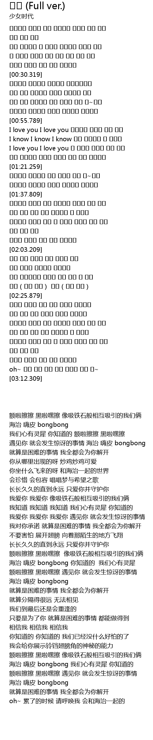 I love you I love you 널 만나면 놀라운 일이 생겨 |